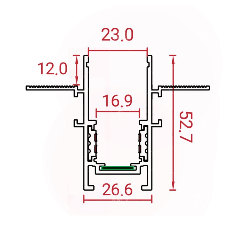 عرض برش کناف در این نوع ریل 2.6 سانتی متر و ارتفاع ریل تا لبه کناف 5 سانتی متر می باشد.شامل انواع چراغ مگنتی و ریل با 2 سال گارانتی و خدمات پس از فروش.